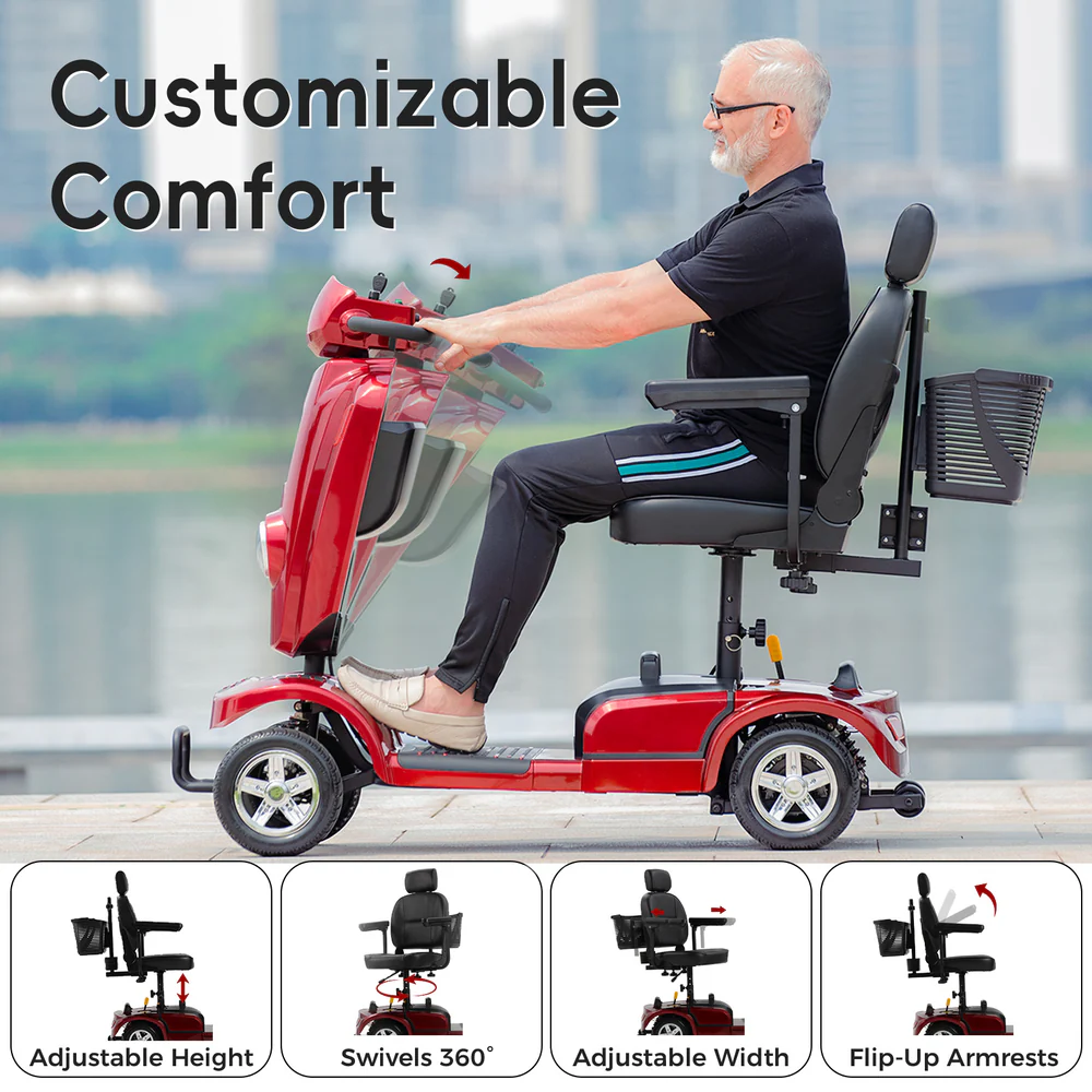 Designed to adapt to your body and preferences, this mobility scooter features adjustable seat height, 360° swivel functionality, flip-up armrests, and adjustable seat width. Whether you're getting on and off, turning to reach something, or riding for extended periods, every detail ensures comfort, support, and flexibility tailored to you.
